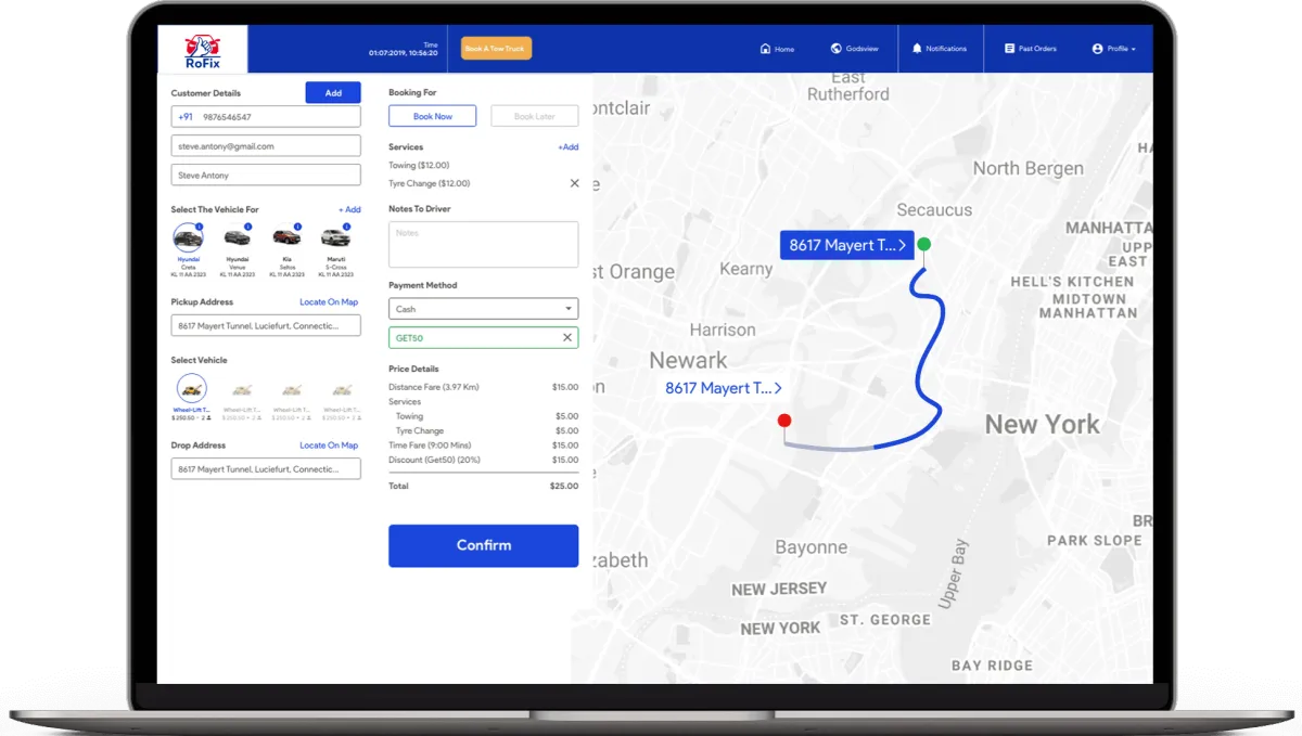 RoFix towing software not only simplifies job management with easy auto dispatching and real-time fleet tracking from anywhere, but also connects you to a larger network of customers. It brings in more jobs from our extensive network, helping you expand your reach and grow your business.